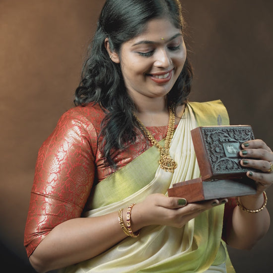 💫 Style Tip: Pair RJ-006 with a classic Kasavu saree, Kanjivaram silk, or festive lehenga to make your presence unforgettable.