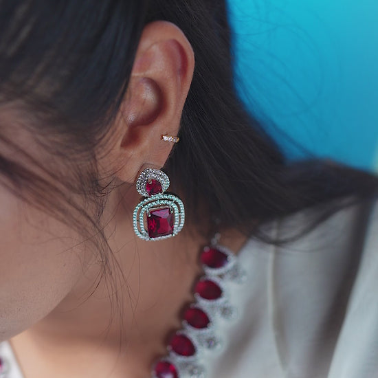 Matching Earrings: Perfectly balanced drop earrings echoing the necklace’s ruby motif, designed to complete your regal look with finesse.